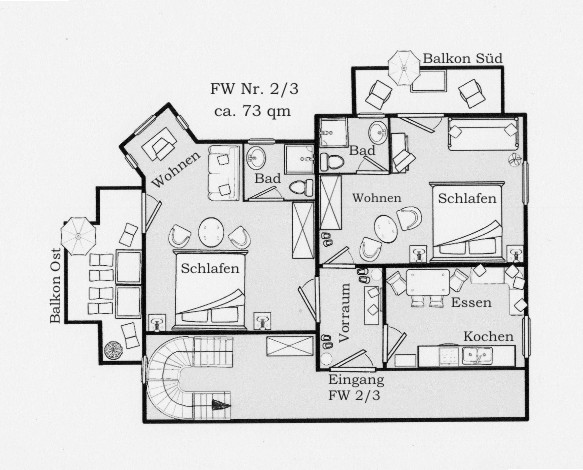 Grundriss Ferienwohnung Nr. 2/3